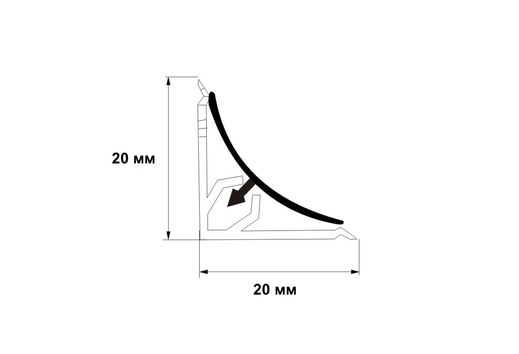 Водобранна лайстна 1216. ПВЦ основа с алуминиева лицева лайстна. Дължина 4 метра. Размер 20х20 мм. Цвят: черно мат. Възможен е транспортен срез.