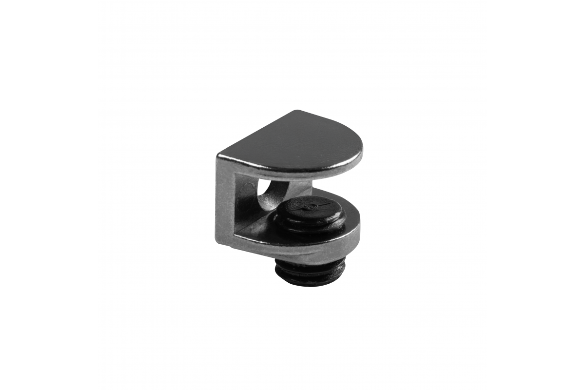 Метален черен рафтоносач за стъкло до 8 мм. Със затягане на стъклото. Монтаж с винт.